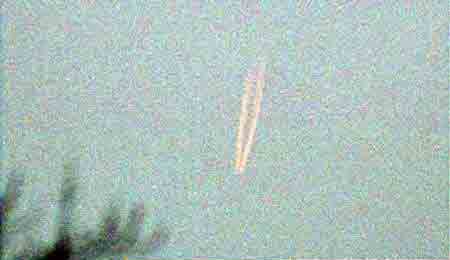 在河北省任丘市市区西部上空发现一个不明飞行物,该不明飞行物在天空中留下的轨迹持续了40分钟。