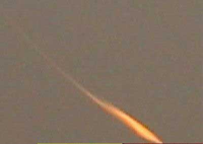 有一个拖着长长尾巴、类似彗星的发光物正缓缓地向下移动,闪着火焰般的光芒。
