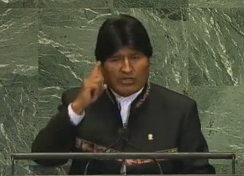 【提示:第67届联合国大会一般性辩论于2012年9月25日拉开帷幕,来自世界120多个国家的国家元首、政府首脑、副总理、外长等高官云集纽约联合国总部,就当前国际社会面临的重大问题阐述立场。玻利维亚总统埃沃·莫拉莱斯Evo Morales在67届联大一般性辩论上演讲,承认2012年12月21日是提升的开始。他指出:这天标志着人类中心主义的结束,是生物中心主义的开始。这是仇恨的结束与爱的开始。是谎言的结束与真理的开始。这是悲伤的结束和欢乐的开始。这是分裂的结束与统一的开始。
