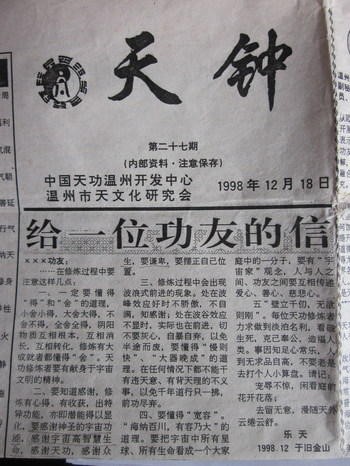 这是1998年12月18日,登在《天钟》报第二十七期,乐天大师《给一位功友的信》